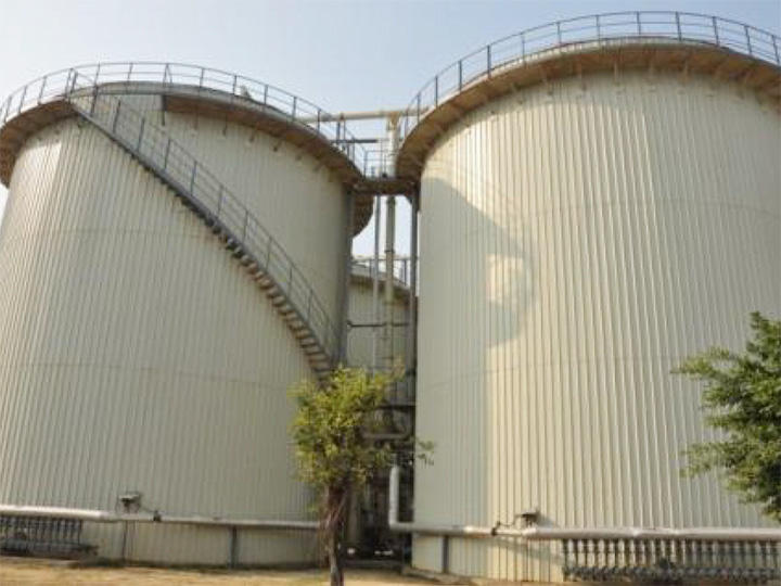 UASB反應(yīng)器的基本原理是:反應(yīng)器主體部分可分為兩個(gè)區(qū)域,即反應(yīng)區(qū)和氣、液、固三相分離區(qū),在反應(yīng)區(qū)下部是沉淀性能良好的污泥形成的厭氧污泥床;廢水通過(guò)布水系統(tǒng)進(jìn)入反應(yīng)器底部,向上流過(guò)厭氧污泥床,與厭氧污泥充分接觸反應(yīng),有機(jī)物被轉(zhuǎn)化為甲烷和二氧化碳,氣、液、固由上部三相分離器分離。有效利用厭氧細(xì)菌自身的凝結(jié)和固化作用,在一定的水力條件下,形成顆粒狀污泥。這些高濃度顆粒狀污泥具有較大的比表面積,且有很高的活性,這些顆粒狀的活性污泥完成對(duì)有機(jī)物的處理。
